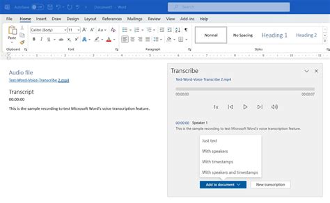 how to transcribe audio on microsoft word